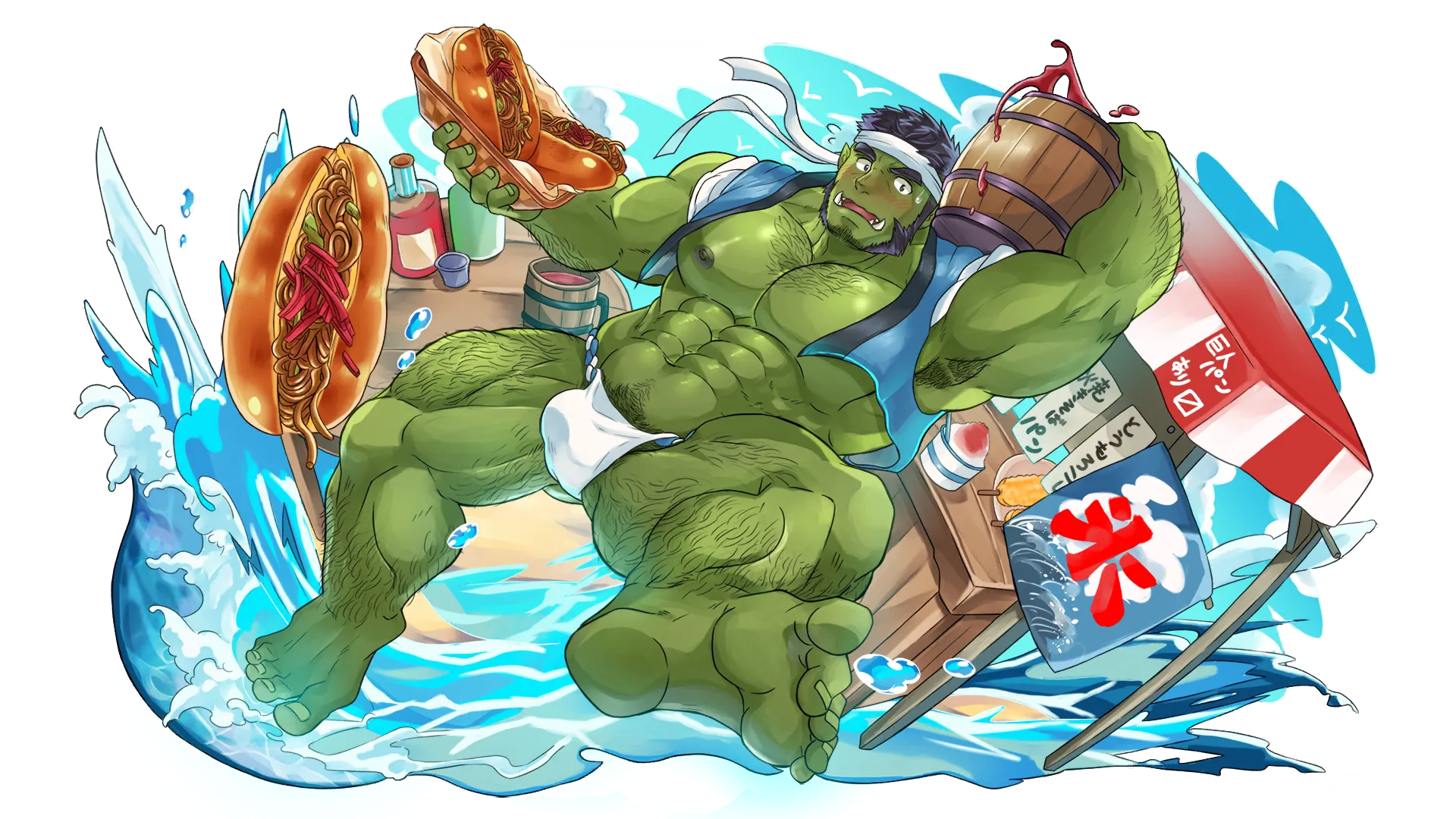 | 4 | あちゃあ、気合い入れすぎて汗だくだ。 拭いてくれんか? |